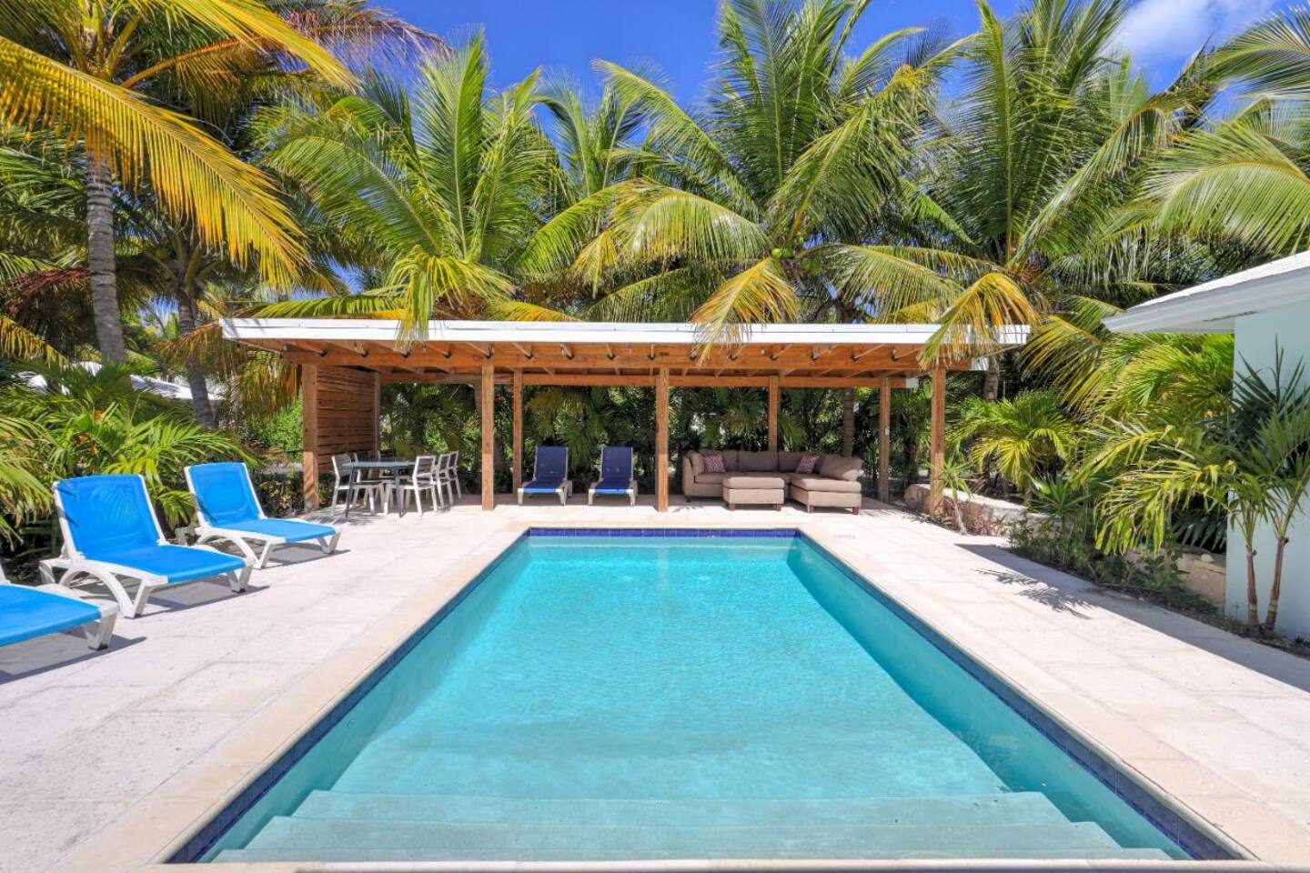 Villa Albatross is a beautiful three-bedroom, three and a half bathrooms’ home with an open floor plan, private garden and swimming pool with an outdoor entertainment area. Nestled in the most desirable private gated neighborhood where there are security checkpoints located at both entrances to this exclusive residential neighborhood at the eastern tip of Providenciales.
